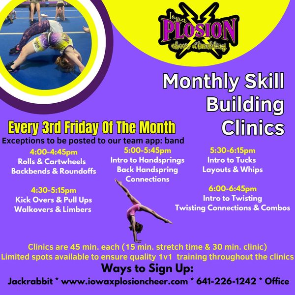 The perfect opportunity for your athlete to push those skills that need a little fine tuning and consistency or maybe even an introduction into learning your next new skill!